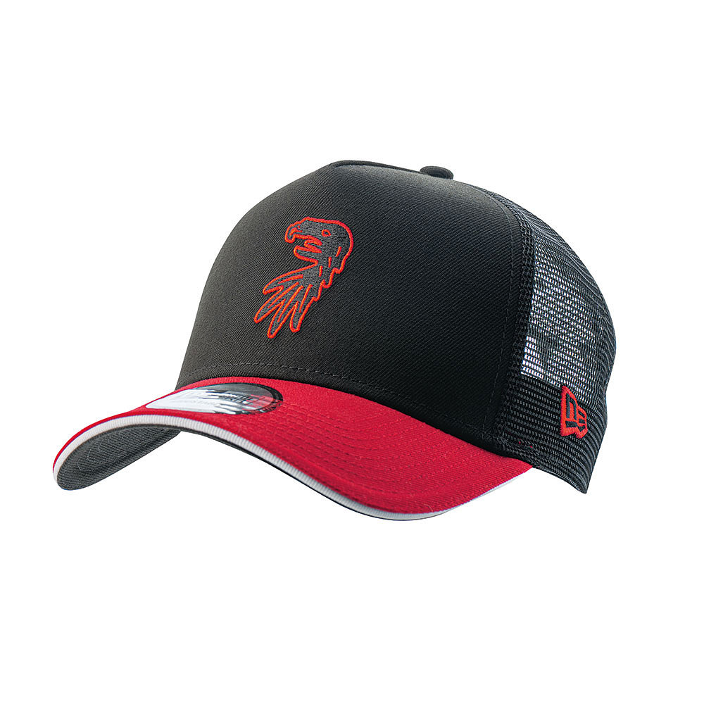 • Design: Schwarze Trucker-Cap mit auffälligem roten Schirm und eingesticktem Greif-Logo auf der Front – mit roter Outline für einen sportlich-dynamischen Look.