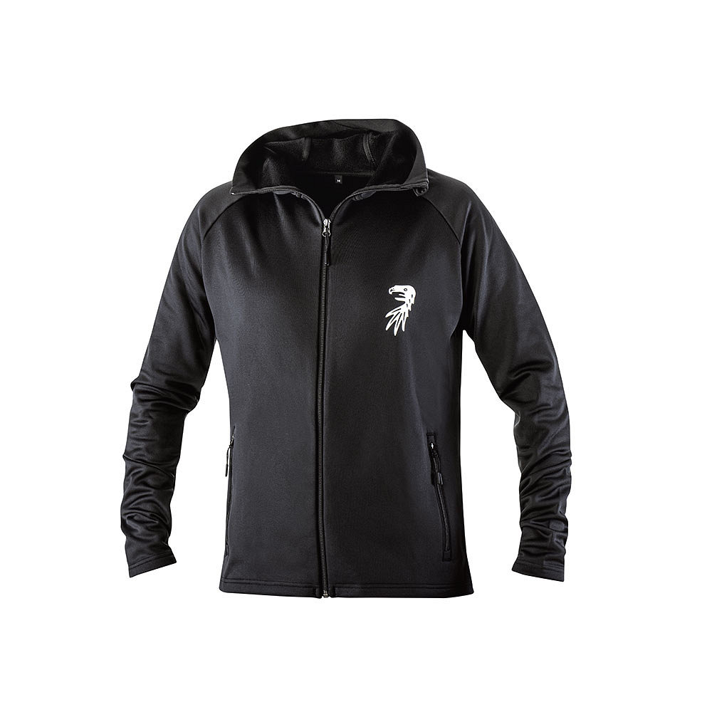 Design: Schwarze Jacke mit SC Freiburg Greif-Logo und Kapuzen-Schriftzug