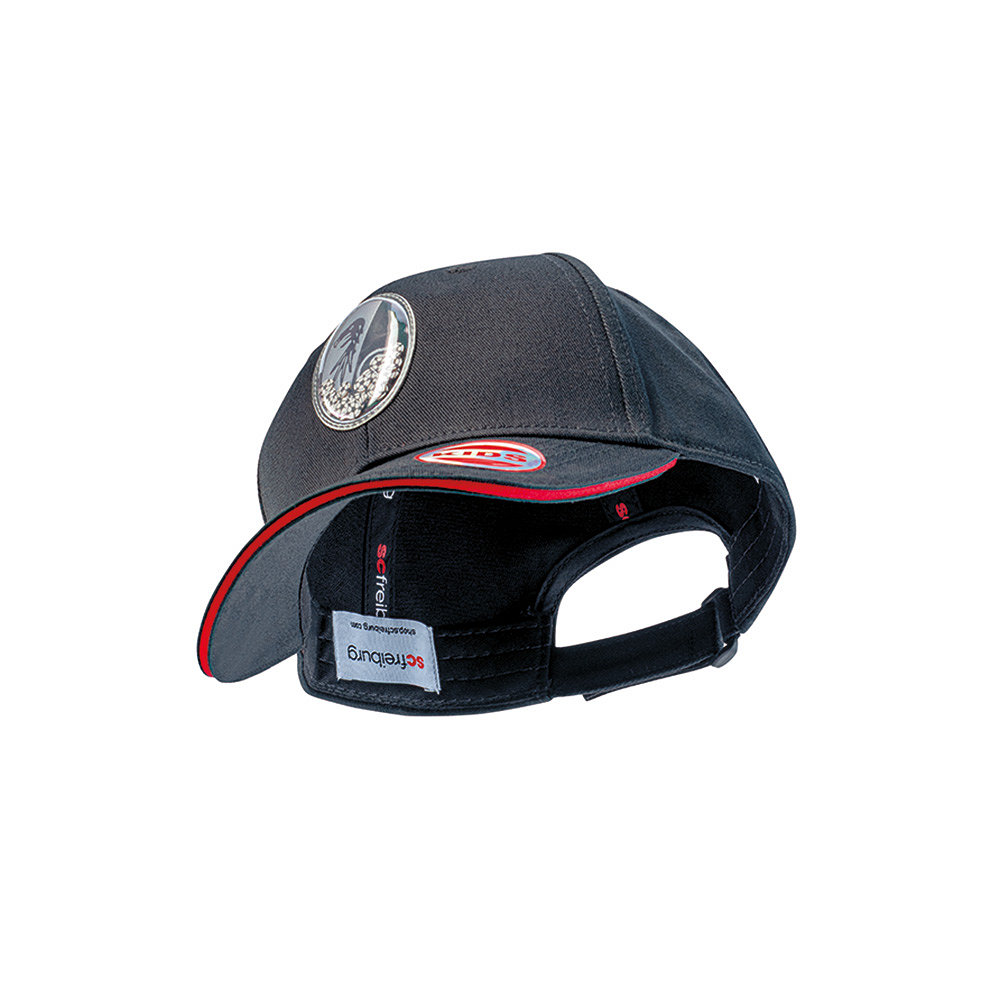 Schwarze Cap mit rotem Kontraststreifen am Schirmrand