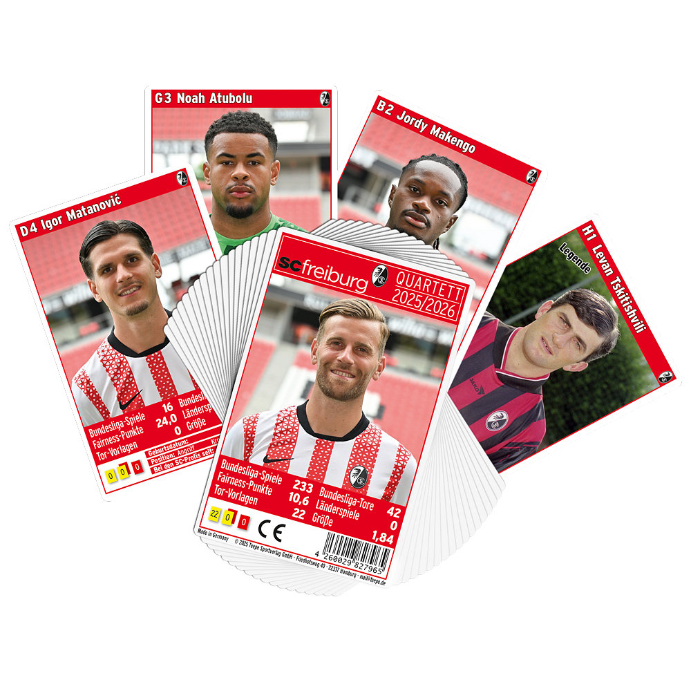 • Ob Zuhause oder unterwegs - mit dem SC Freiburg - Quartett 2025/26 wird es nie langweilig!
