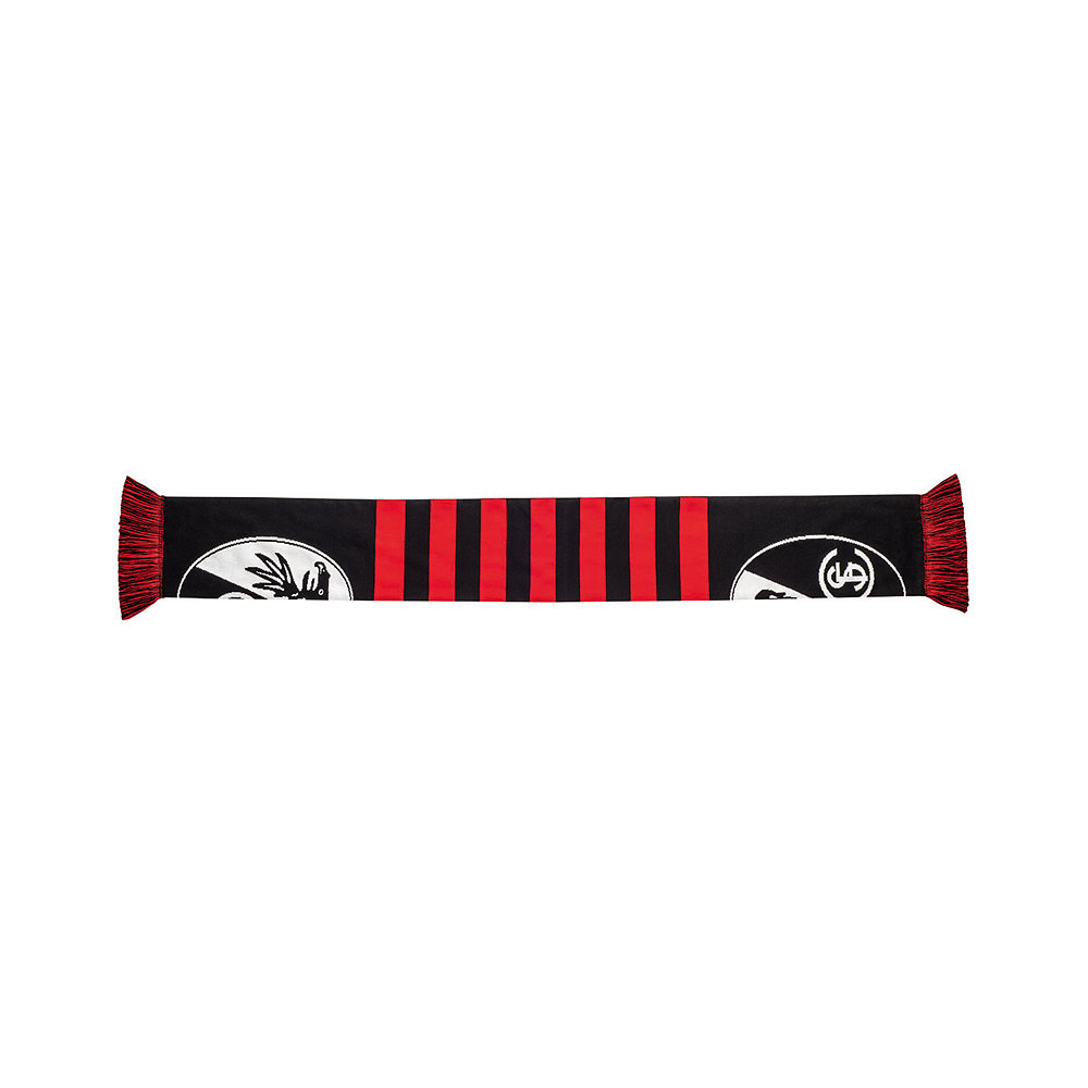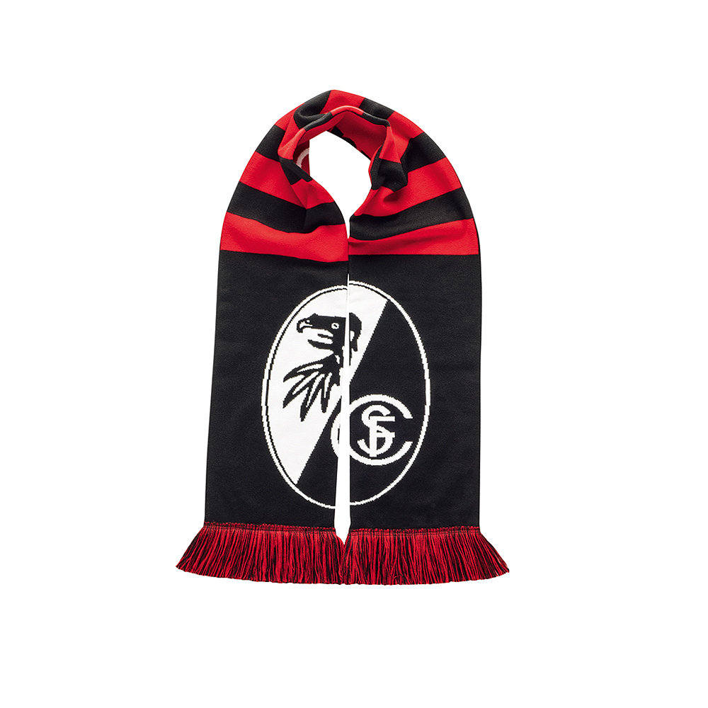 Der schöne schwarz-rot gestreifteSchal wird zu einem Hingucker im Stadion, wenn die beiden Schalenden nebeneinander gelegt werden, so daß die Logo-Hälften zu einemSuper-Logowerden. Wer es etwas klassischer mag, kann den Schal auf die Rückseite drehen. Dort ist der Schriftzug "Sportclub Freiburg" in schwarz-weiß mittig eingewebt, sowie zwei Vereinslogos an den beiden Schalenden.