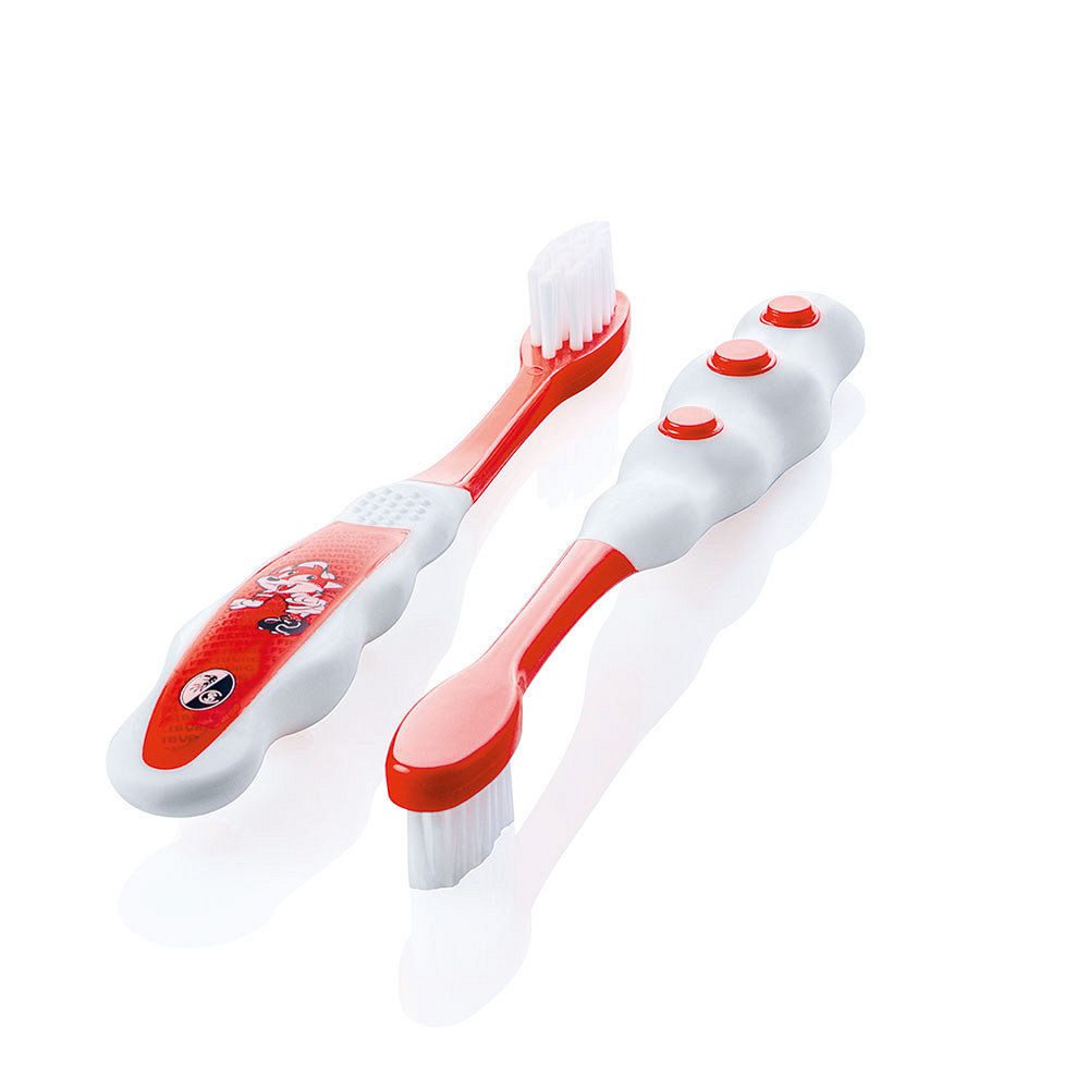 Mit diesem farbenfrohen Zahnbürsten-Set macht Zähneputzen gleich doppelt Spaß! Das SC Freiburg Kinder-Zahnbürsten-Set besteht aus zwei ergonomisch geformten Zahnbürsten in den Vereinsfarben Rot und Weiß. Die Griffe sind speziell für kleine Kinderhände entwickelt und bieten dank der rutschfesten Noppen sicheren Halt.