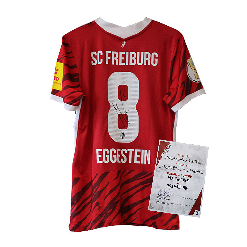 - Matchworn Heimtrikot-Set (Trikot + Hose), getragen von Eggestein im DFB-Pokal-Viertelfinale gegen den VfL Bochum